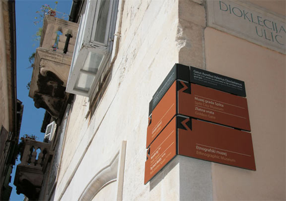 Riječ je o dizajnu sustava signalizacije kulturnih, turističkih i komercijalnih sadržaja u povijesnoj jezgri Splita. Među deset pristiglih radova žiri sastavljen od arhitekata, dizajnera i konzervatora izaabrao je rješenje autorskog tima koji su činili Mirna Grbac, Branka Juras, Ana Pojatina i Viktor Popović. Pozicije za postav signalizacijskog sustava proizlaze iz analize glavnih ulaza, osi kretanja te najvažnijih križanja unutar prostornog obuhvata. Tako se formirala informacijska infrastruktura koja omogućuje navigaciju i kretanje, ali i shvaćanje cjelokupnog prostora povijesne jezgre Splita. Naziv natječaja upućuje na kompleksnost zadatka, koji ne obuhvaća samo turističke smjerokaze već i spomeničke oznake i komercijalne sadržaje. Projekt obuhvaća širu gradsku jezgru omeđenu ostacima baroknih zidina. Projektirane su dvije osnovne vrste signalizacije - zidne i samostojeće table. Korištene boje proizašle su iz sužene palete koja se integrira u gradsko okruženje. Pojedinačnim bojama označava se karakter sadržaja te vremensko razdoblje nastanka spomenika kulture na samostojećim osnovnim tablama. Razlučivanje hrvatskog od engleskog jezika postignuto je bijelom bojom naspram 25-postotnog tona boje podloge.